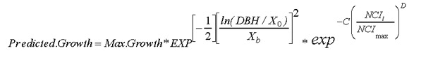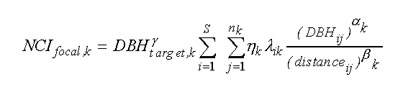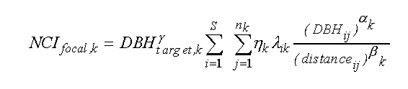where NCI for a target tree of species k is
