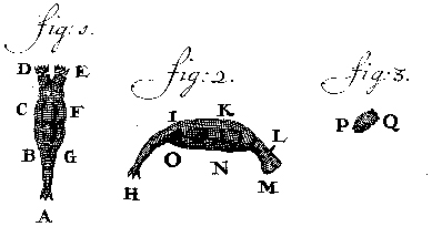 ![]() Fig. 12. Eel scale; Leeuwenhoek’s Fig. 1, as drawn with a microscope, and Fig. 2 represented the actual size (written 25 July 1684, Royal Society of London Philosophical Transactions 15: facing p. 883 (1685) or Leeuwenhoek 1939–1999, IV:Plate 27). |