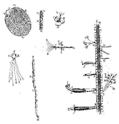 Leeuwenhoek was an important experimenter (Meyer 1937)—a worthy successor of Redi—though by modern standards his experiments seem quite simple. For example, he discovered minute “vinegar eels” (Turbatrix aceti) in vinegar, and also several other kinds of microorganisms in pepper water (peppercorns submerged in water). Later he added one part of vinegar with “eels” to 10 parts of pepper water and found that all the animalcules in the pepper water died, but the vinegar eels continued to flourish (9 October 1676, Leeuwenhoek 1939–1999, II:125–129). As a merchant, Leeuwenhoek learned to note the size and quantity of goods, and he took this concern into his scientific studies. He developed fairly reliable methods of measurement. He compared the lengths of some microorganisms to the diameter of hairs on cheese mites. To calculate the number of microorganisms in a drop of water, he assumed that a drop of water is the size of a pea, and that a millet seed is 1/91 as large as a pea. He then drew into a pipette a quantity of water the size of a millet seed and divided that amount of water into 30 parts along the pipette, and estimated the animalcules in 1/30 of the water. Finally, he made the calculations to obtain the number in a volume of water the size of a pea. In this case, he estimated there were 2,730,000 animalcules (23 March 1677, Leeuwenhoek 1939–1999, II:119–201). Leeuwenhoek never tired of making discoveries with his microscopes, but he also developed theoretical interests. One of the strongest such interests, which he constantly discussed, was the idea of spontaneous generation of life, against which he collected much evidence, beginning also with his letter of 9 October 1676. Dobell (1932:136, note 1) interpreted some comments in this letter as showing Leeuwenhoek debating with himself the possibility of spontaneous generation before he reached his firm opposition to the idea seen in his later letters, and Ruestow (1984) agreed. However, Leeuwenhoek’s modern editors think this is a misunderstanding of Leeuwenhoek’s less than crystal-clear comments (in Leeuwenhoek 1939–1999, II:101), and Smit (1982) appears to agree with these editors, since he does not discuss any ambivalence in this letter. The occasion for Leeuwenhoek raising the question of spontaneous generation was his discovery of microorganisms in rainwater that had stood in a cask for several days. A later example of Leeuwenhoek’s observations discrediting spontaneous generation is in a letter written 9 February 1702, stating that on the previous 25 August he had found animalcules (rotifers) in water from a house gutter, in which he observed that they became dry for a time, and then when wet again, their bodies swelled and they swam off. He thought that if one did not know that they were dormant in the dry matter and then it became wet, one might think they arose spontaneously in the wet matter. Another of Leeuwenhoek’s strong theoretical interests was in reproduction. This interest was sharpened by the discovery of spermatozoa (“animalcules” to him). A medical student, Johan Ham, told him in the summer of 1677 about his discovery of animalcules in the semen of a man with venereal disease; he believed they arose from the putrefaction of the semen. Leeuwenhoek refused to accept Ham’s idea on their origin, since that implied spontaneous generation. His study of his own semen (from his marriage bed, he informed the Royal Society) showed that spermatozoa are natural to semen. He reported his observations to the Royal Society in a letter written in November 1677, and in a subsequent letter of 18 March 1678 he included drawings of both human and dog sperm (Leeuwenhoek 1939–1999, II:280–293, 346–349, Plates 16–17). During his lifetime, he described sperm from 30 kinds of animals: 7 mammals, 2 birds, 1 amphibian, 7 fish, 11 arthropods, and 2 mollusks (Cole 1937:8). He soon concluded that sperm are embryos, and he rejected his townsman de Graaf’s conclusion that embryos arise after intercourse when eggs from mammalian ovaries enter the Fallopian tubes (Lindeboom 1982, Ruestow 1983). Leeuwenhoek thought ovaries are nonfunctioning in females, just as nipples are nonfunctioning in males. In a letter dated 13 June 1679, he rejected an Aristotelian report that mice reproduce by parthenogenesis (Leeuwenhoek 1939–1999, III:73–83), but in a long letter written on 10 July 1695, he reported (Leeuwenhoek 1939–1999, X:269–301) his discovery of parthenogenesis in aphids. He returned to this subject in subsequent letters (Cole 1930:90, 1937:224, Egerton 1967:6–16). After discovering parthenogenesis, he should have rethought his belief that embryos are contained in sperm. On other occasions he admitted his mistakes, but concerning parthenogenesis he went to extremes to avoid doing so (Cole 1937:12–13, Schierbeek 1959:105–106). Still another of Leeuwenhoek’s persistent interests was in parasites. We saw in Parts 17 and 18 (Egerton 2005b, c) that this interest was fairly common among contemporary naturalists and physicians—focused on the natural history of parasites and interactions with hosts, without the parallel development of a theory of parasitology. In those days, most people had some first-hand knowledge of fleas and lice, and we have already seen that in his first letter to the Royal Society he had included observations on louse anatomy. He reported further on lice in a letter dated 15 February 1677, which is lost. In his letter of 5 October 1677, he reported observations on the development and metamorphosis of fleas. He had put several in a container and found that a flea can lay 15 or 16 eggs in 24 hours. He then carried enclosed eggs in his pocket and found they hatched in 8 or 9 days. He described the external anatomy of a larva and compared it to that of silk worms. He thought Swammerdam had mistaken flea droppings for eggs (Leeuwenhoek 1939–1999, II:245–253). Neither of 
