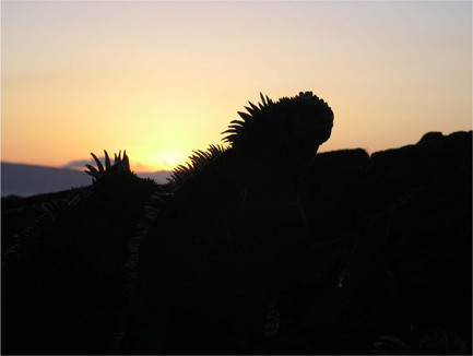 Cover Photo: A Galápagos marine iguana, Amblyrhynchus cristatus, basks in the sun after foraging. Iguanas forage on seaweeds in the intertidal zone during low tide. Foraging ability is reduced by heavy swells and high seas, but even more by the warming effects of El Niño, which reduce nutrient availability and algal growth. Marine iguanas suffered ~50% mortality during the 1982–1983 El Niño episode, and there were substantial reductions during the 1997–1998 event, which occurred while the study was in progress. This photograph was taken in connection with an article by L. R. Vinueza, G. M. Branch, M. L. Branch, and R. H. Bustamente, “Top-down herbivory and bottom-up El Niño effects on Galápagos rocky-shore communities,” to be published in Ecological Monographs 76(1), February 2006.